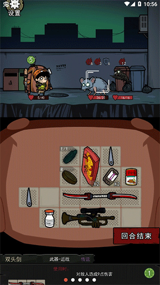 进入游戏关卡内将扮演末日幸存者,需要在有限背包里合理地管理资源、合成装备,可以升级角色的等级让背包的空间变得更大,通过随机关卡对抗丧尸与Boss,每局都是未知的挑战,如果在关卡内死亡了需重新开始,靠策略搭配道具与装备来打败各种敌人获得关卡胜利。