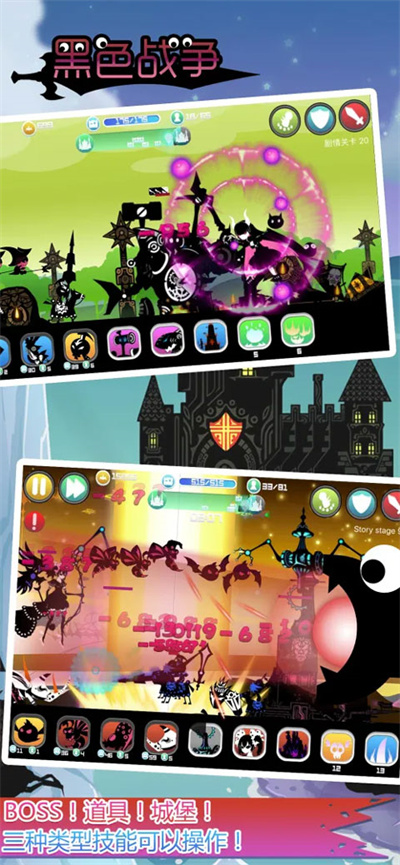 黑色战争围绕立体策略攻防构建核心玩法,独特剪影画风强化整体战场氛围,兵种搭配与基地建设丰富长期养成内容,多元模式与灵活战术延长游玩体验,移动端适配的操作方式让战术指挥更加顺畅。