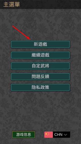 1、游戏主菜单界面,点击新游戏按钮,进入君主选择页面,开启三国势力的经营流程。