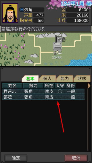 4、武将列表中,选择执行命令的武将,完成人事指令的下达,推进势力的发展运营。