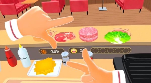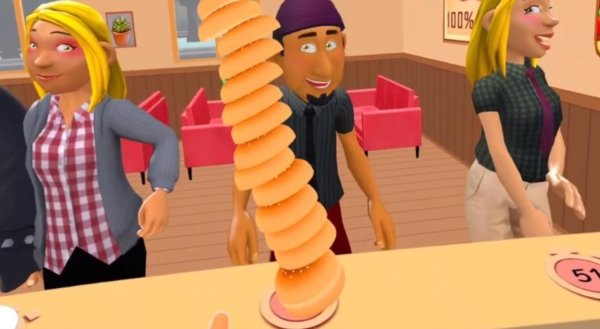 4. 客人来了!他们头顶上会冒出对话气泡,清楚地显示出他们想要点的汉堡是由哪些材料组成的。我们要做的就是眼疾手快,按照顺序把正确的食材组合起来。