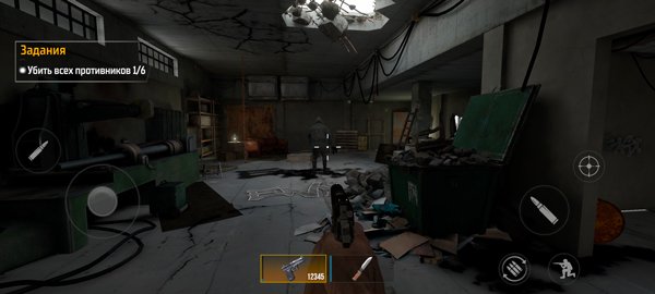 2、操作方面,玩家可通过左下方的虚拟摇杆控制角色移动方向;而右侧则配备了攻击、装填子弹、下蹲等功能按键,战斗操作一目了然。