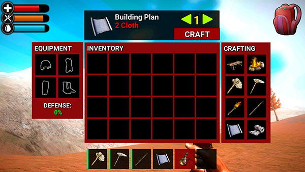 5、背包是你最重要的伙伴。点开它,你不仅能看到自己拥有的所有物品,更重要的是,这里也是你进行制作合成的地方,绝大多数物品都需要在这里创造出来。