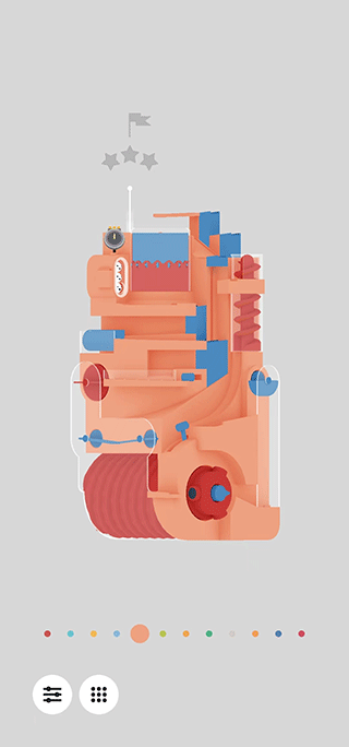 游戏里控制台上的每一个按钮,都做得跟真的一样,甚至连金属的反光和塑料的质感都细致地还原了出来。当钢珠滚过台面的时候,你甚至能看到背景板上那些经年累月留下的划痕。它的画面不是那种华丽酷炫的风格,而是一种“这东西本来就长这样”的朴实细腻感。很多时候,你正盯着这些细节出神,手指就已经下意识地动了起来。操作方式真的非常直观,在屏幕上移动手指就能控制小球,通过点击、旋转等手势来操纵各种装置,每一次闯关,都像是在体验一场独一无二的机械障碍赛。