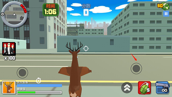 3、屏幕左下方有一个虚拟摇杆,用左手来操控它,可以让你的鹿角色在地图上自由移动,灵活躲避敌人的攻击。