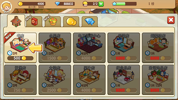 2. 想办法让那些造型可爱的顾客们爱上你的商场,适时举办一场火爆的促销活动,看着金币滚滚而来吧。
