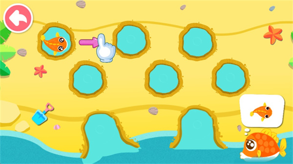 2、当在挖掘的时候,一些的道具能触发小游戏,像是小鱼被困在沙子中,需要游玩小游戏让小鱼游回大海;