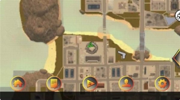1、进入游戏后,先点击左上角的小地图,打开整个城市的地图。在地图上找到一个手枪图标,那就是武器商店了,朝着那个方向过去就行。