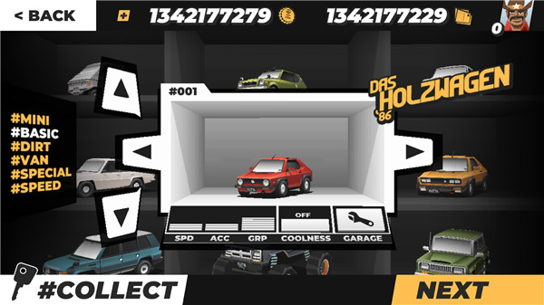 4、换上满意的头像之后,回到主菜单,按下那个大大的“start”按钮,接下来就进入了激动人心的车辆改装环节,打造你的专属座驾吧。
