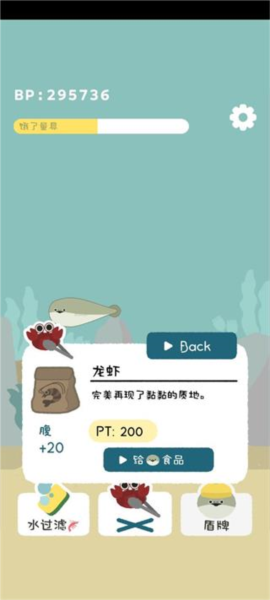 2、当遇到危险的捕食者时,你可以轻轻点击屏幕将其赶跑,同时还可以为虚无鱼装备各种防护装备来提升它的防御能力。