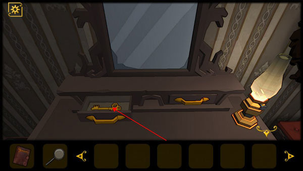 1、在镜子的抽屉里能获得钥匙,用钥匙打开房门,点击沙发查看信件;