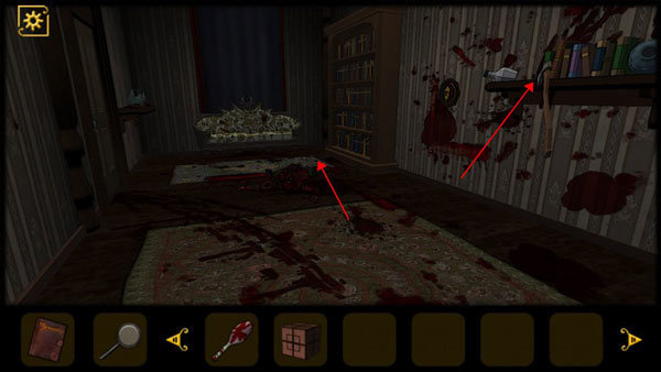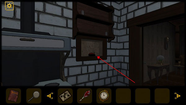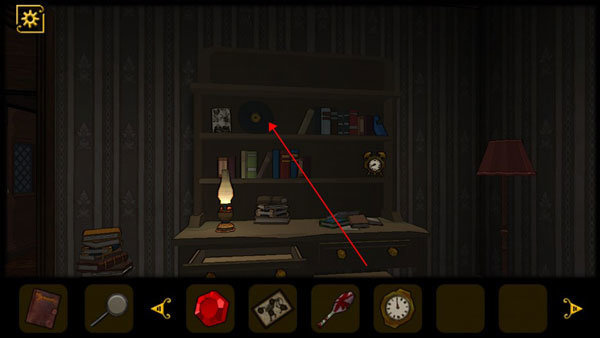 5、查看桌子抽屉,获得道具和查看日记,将红色机关石放入墙上的红色凹槽中,回头会发现进门处出现一只怪物,将门关上,注意门上的花纹;