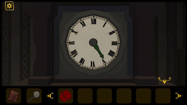 4、在留声机的背后获得房门钥匙,打开房门去往下一个房间,入眼即可看到一个钟表,绿色指针指向V;