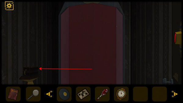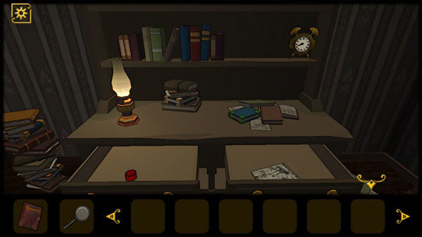 2、打开抽屉获得红色机关石头和查看报纸,注意钟表上红色指针指向的数字VIII;