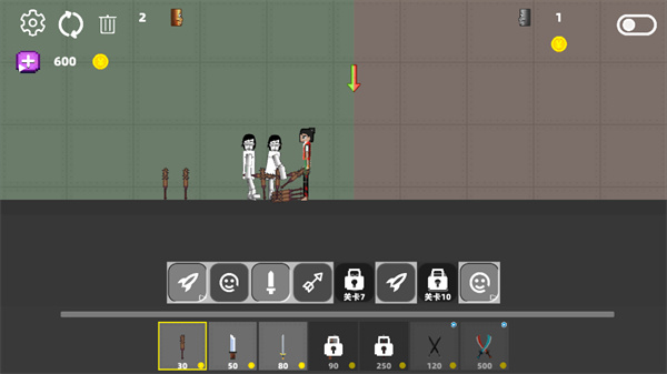 2、沙盒编辑需要角色点击双剑图标,将其放置在右侧角色的上方,作为战斗标识或武器装饰。
