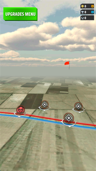 2、进入游戏后,你会看到代表敌我双方的蓝红战线,还有远处的旗帜。你的首要任务就是沿着战线,自主索敌并加以摧毁。