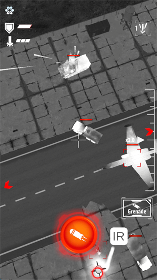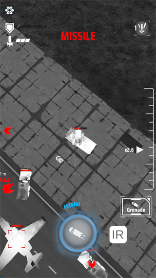 4、目标锁定完成后,按下屏幕下方的“红色投弹”键,即可投放炸弹。。要小心的是,敌方步兵的防空导弹带有追踪功能,所以在轰炸的最后关头最好进行机动规避,不推荐长时间悬停在目标上空。