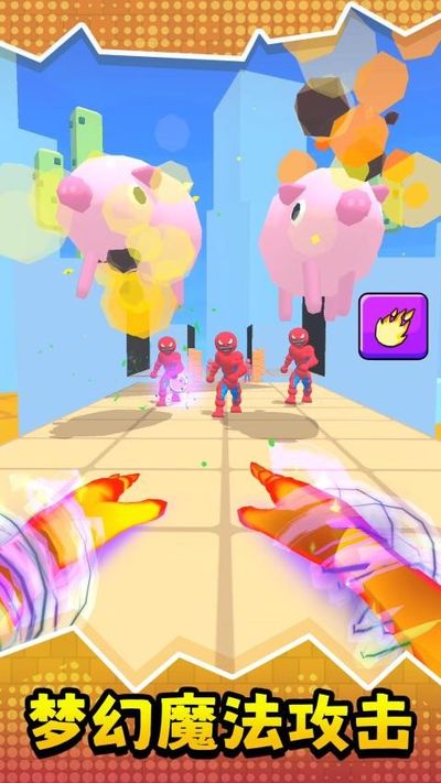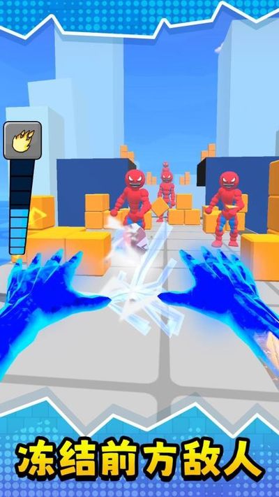 2、操控带有冰霜特效的双手,点击使用技能攻击红色敌人,快速击败敌人推进关卡。