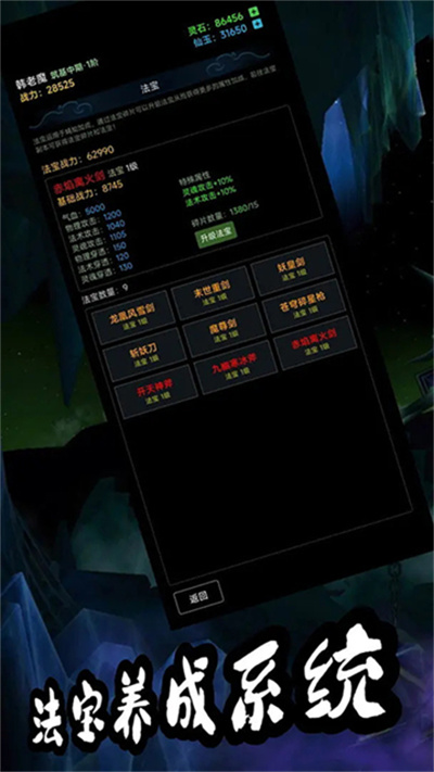 炼气、筑基、金丹、元婴、化神、炼虚、合体、大乘、渡劫,完整修仙境界体系,每一步突破都有专属剧情与实力跃迁。