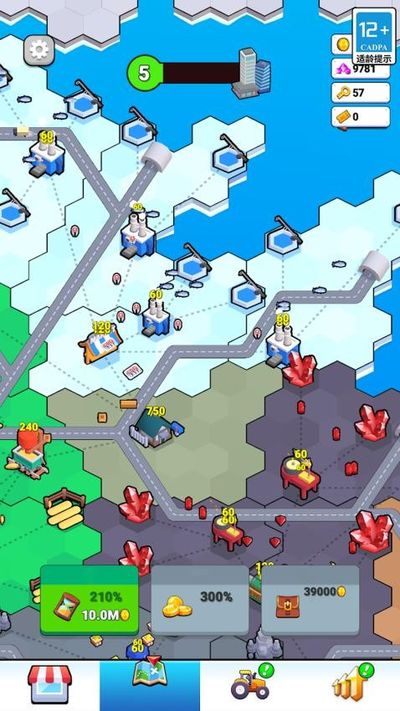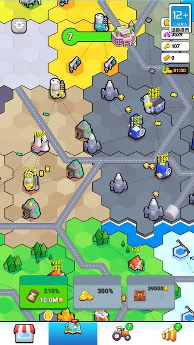 4、永久升级界面,消耗钻石提升资源收入等永久属性,提高工厂收益,打造更高效的生产体系。