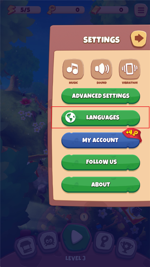 7. 去主界面左下角的齿轮设置里,你会看到音乐开关。先点一下关闭音乐,再点一下重新打开,第七张贴纸就会调皮地出现在旁边。