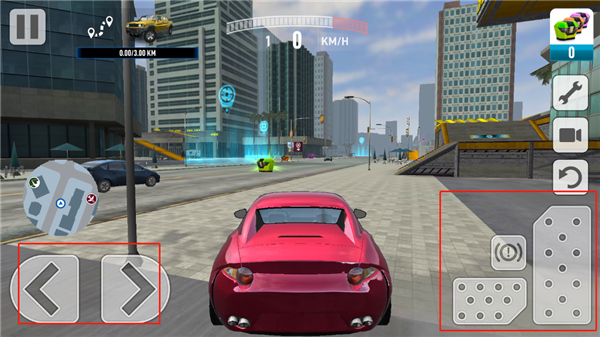 4、正式进入驾驶界面后,操作区一目了然。屏幕的左右两边分工明确,左手负责打方向盘,掌控车辆的去向;右手则掌管着油门和刹车,是速度的来源,也是安全的保障。