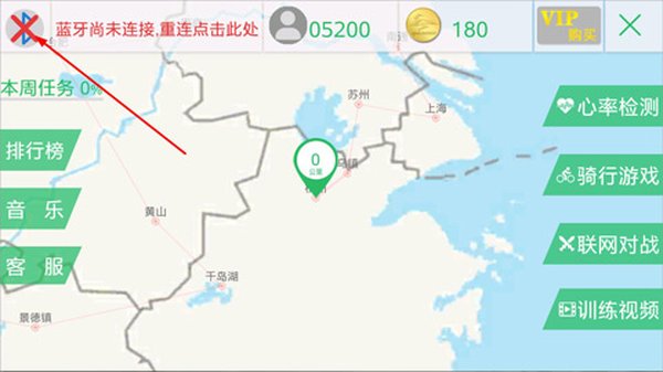 1、打开App登录后,主页功能还挺全的,任务、排行、游戏啥都有。想连蓝牙的话,直接看左上角,看到截图里这个蓝牙标志没?戳它。