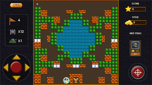•你的任务是控制一个新手坦克,摧毁每一个进入游戏场地的敌方像素坦克,并保护“鹰的基地”不被摧毁。