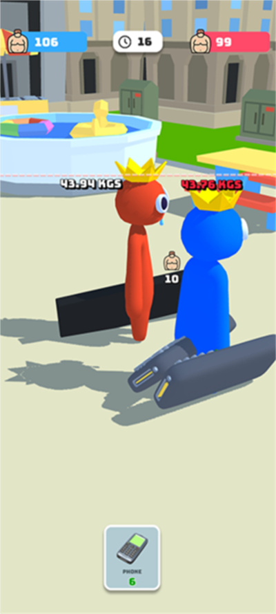 1、在主界面选择电话等道具,购买后投喂角色,快速增加体重,提升基础数值。