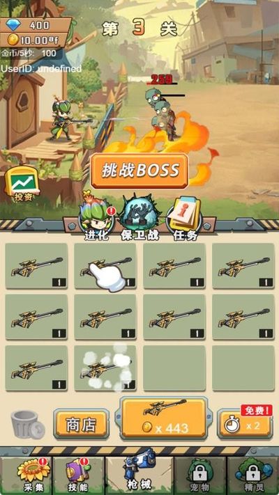 4、消耗金币购买更强力的武器,合成高级武器提升角色输出,更轻松地应对僵尸。