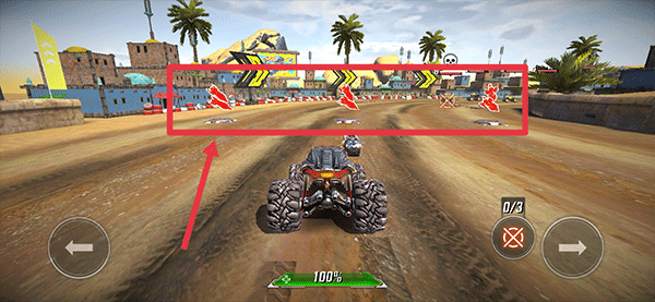 5、而屏幕左侧的那个是硝基助推器按钮。使用它之后,你的赛车会在短时间内获得巨大的速度提升,是超车的绝佳利器。