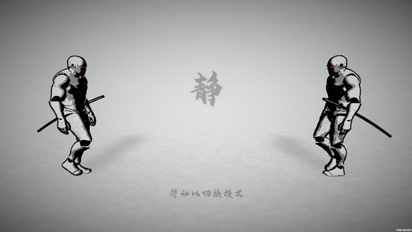 1、简单的水墨画风格的角色设定,连画面也是干干净净的没有多余的东西;