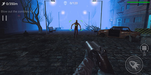 2、面对僵尸的进攻,用绿色准星自动进行瞄准;