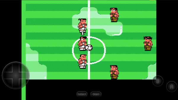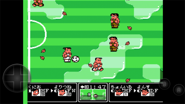 4、 进入比赛画面了。操控其实相当直观,主要就是方向键控制移动,外加两个功能键,一个负责攻击,一个负责传球/射门。通过不同的按键组合,就能实现各种花哨的动作。