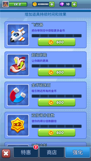 只要你不断挑战,就能解锁和升级各种各样的技能,并获得专属称号。这些技能会带来诸如加速、护盾保护、自动吸附金币等非常实用的效果,能帮你更好地应对那些难度更高的赛道。