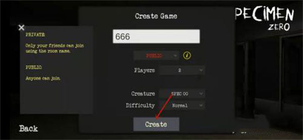 4、然后,你会看到一个“Create Game”的选项,点击它来创建一个新的游戏房间。