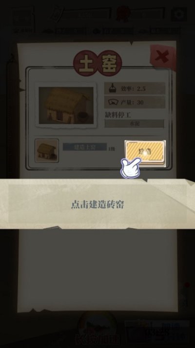 5、当你对基础的挖掘操作了然于胸后,就可以着手规划你的地盘了。那些挖出来的废土可不是没用的,你可以建造各种各样的建筑,比如先来个土窑,把资源转化成商品。