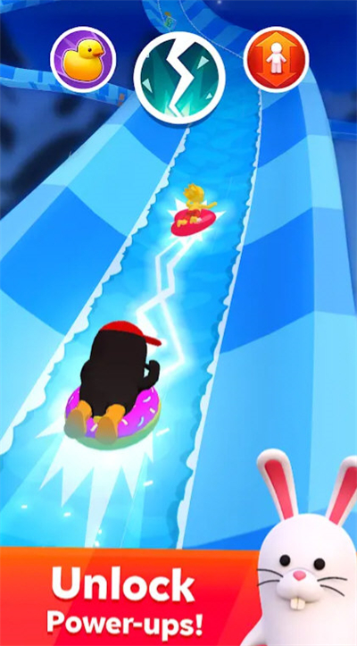 2、进入对局后,操控角色在水上滑梯滑行,超越其他对手提升排名。
