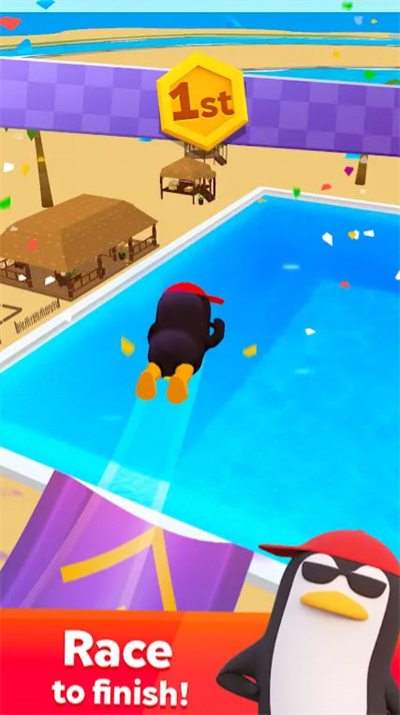 3、Q萌卡通形象搭配清新画面色调,细致还原水上乐园场景,阳光、水花、沙滩等元素相互融合,打造清爽舒适的视觉体验。