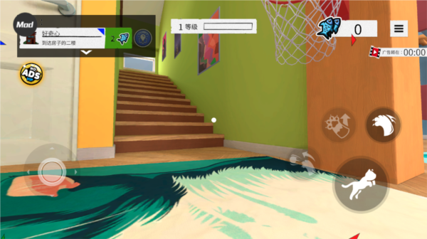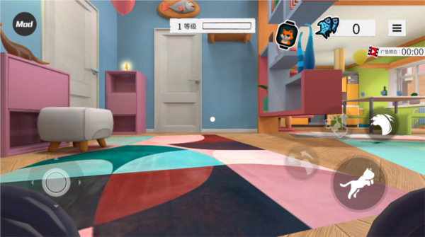 1、游戏开始后,控制猫咪移动的方式非常直观,使用屏幕左侧的虚拟摇杆,就能让你的小猫前后左右地跑动起来。