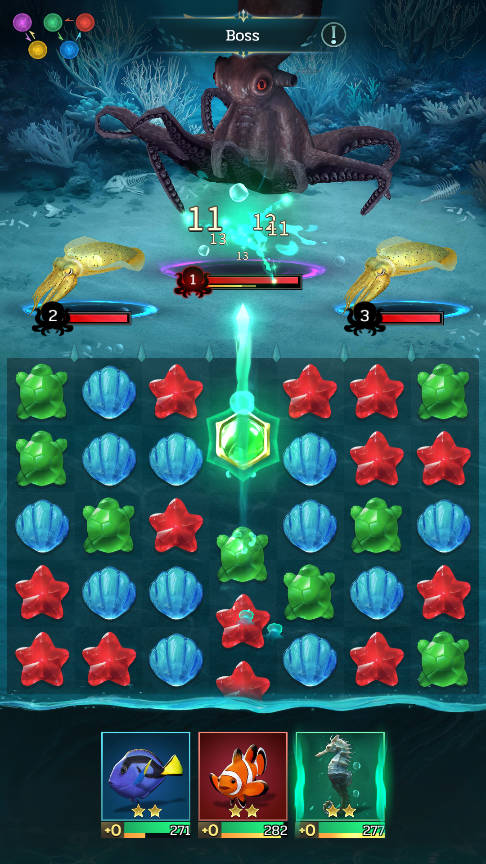 2. 游戏里棋子的颜色跟你的海灵是对应的,不同颜色间还有一套相生相克的规则。举个例子,用克制对方颜色的棋子去攻击,造成的伤害能直接翻一倍;反过来,要是你的颜色被对方克制,那伤害就得打个对折。所以,看清楚颜色再上阵非常关键。另外,棋子的攻击力高低,取决于你队伍里同色海灵的攻击力总和,记得把最强的凑一队。