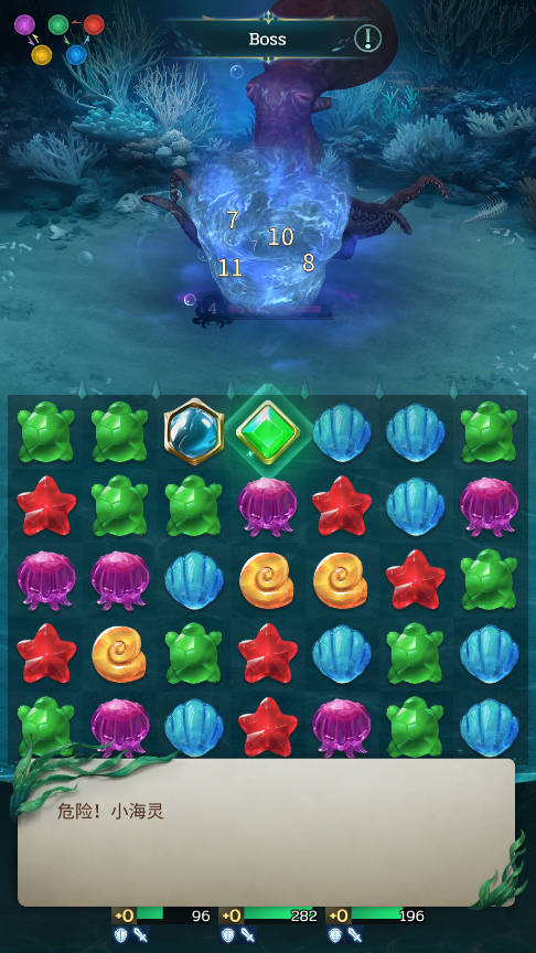 5. 守关怪物的血条左边,会有一个数字倒计时,告诉你它还有几回合就要反击了。看准这个时机,你就能在它动手之前,尽可能多地消除棋子。利用这些安全的回合多消几下,可以为你的海灵快速攒满双倍怒气,为下一波爆发做好充足的准备。