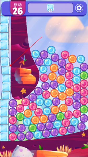 4、有时候,你想消除的同色泡泡中间被其他颜色的泡泡隔开了,此时可以先把中间的障碍泡泡消掉,同样能让同色泡泡连在一起,达到完成任务的目的。