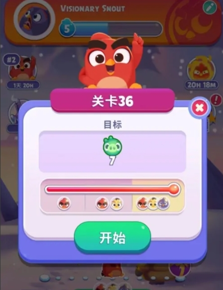 1、先下载并安装好《愤怒的小鸟:梦幻爆破》,打开后你会发现游戏是以一关一关推进的形式进行的,点击“开始”按钮就能进入第一个挑战。