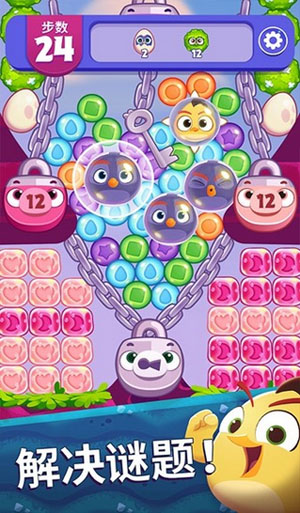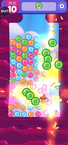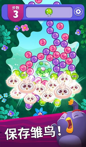 5. 接下来就是通过消除小怪物周围四个及以上的同色泡泡,来制造更多的小鸟。利用这些小鸟的爆破效果,把所有小怪物都清除掉,就能成功过关啦!