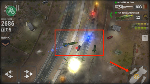 6、通过操作方向键,将地面上的目标建筑或单位对准在准星里之后,就可以毫不犹豫地按下屏幕右下角的【核弹】图标了,接下来就是见证奇迹的时刻。
