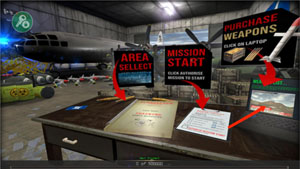 3、采购完毕后,系统会自动带你返回游戏主界面。现在,我们通过点击左边的【AREA SELLECT】选项,来挑选一个战场。。左侧列表展示了AREA1、AREA2、AREA3等多个可选区域,此处以【AREA2】为例进行说明。。