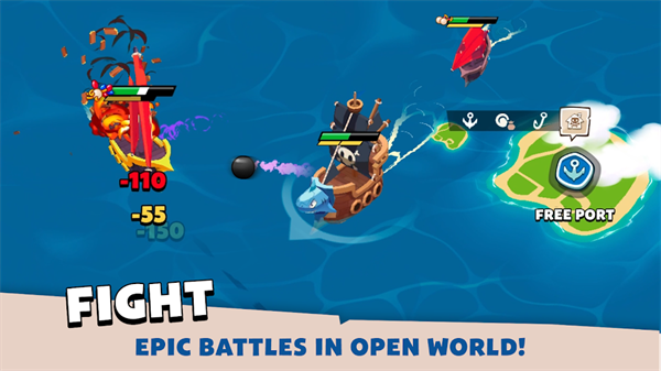 战斗机制:当你的船靠近敌方船只时,船上的火炮便会自动锁定并开火,无需复杂操作就能投入激烈的海战。