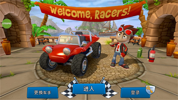 沙滩车竞速2是一款轻松又刺激的卡通风赛车游戏,沙滩和热带环境为主题,各种的赛道,包括海滩、丛林、火山等场景,每一条路线都有不同的挑战和乐趣,还有各种车和角色,每辆车都可以升级和改装,在比赛中可以使用加速、攻击或防御道具让竞速过程更加有趣。
