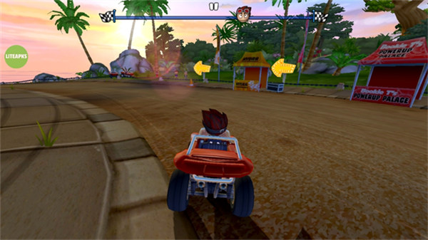 2、各种的赛道场景包括海滩、丛林、火山等,每条赛道都有不同体验;